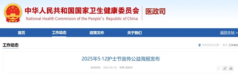 5月12日是国际护士节,今年我国护士节主题为“关爱护士队伍,守护人民健康”。为加强护理行业宣传,进一步在全社会营造良好氛围,医政司组织征集了公益海报,在国家卫生健康委官网发布,供各地参考使用。