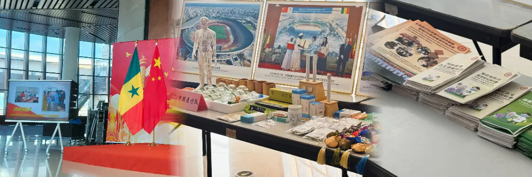 会场滚动播出中国第20批援塞医疗队工作风采宣传片。中国医疗队展区通过图片、易拉宝、折页、医疗器械、中医疗法器具、中成药、养生茶、中药香囊等多种形式展示中塞医疗合作成果。