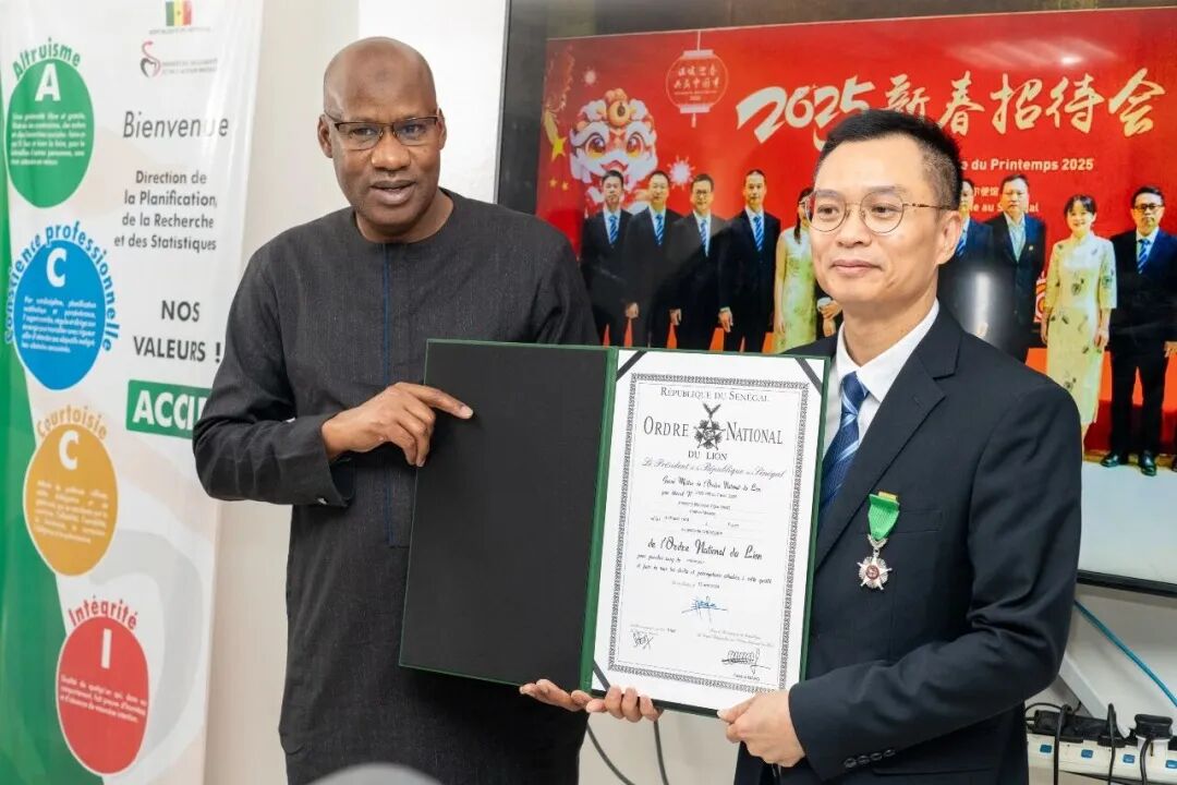 李大使祝贺全体队员荣膺勋章。他表示,自2024年抵塞以来,全体队员以实际行动诠释了“不畏艰苦、甘于奉献、救死扶伤、大爱无疆”的精神,赢得了塞内加尔政府和人民的广泛赞誉与高度信任,为中塞友谊注入蓬勃生命力。