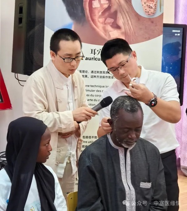 4月20日,第21批援塞医疗队应塞内加尔达喀尔大学孔子学院邀请参加“国际中文日”活动,现场展示针灸、拔罐、耳穴按压等中医特色疗法,为当地民众带来了一场独特的中医文化体验。