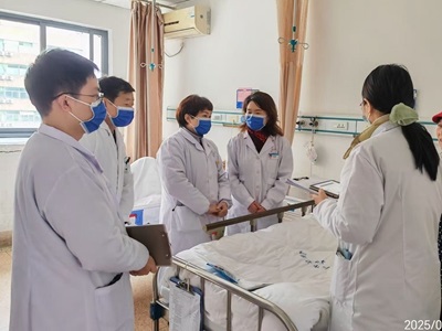 福建省肿瘤医院副院长、肿瘤与血管介入科主任医师方主亭来到邵武市立医院胸心血管外科带教查房,指导治疗团队为一名下肢动脉硬化闭塞的患者调整药物剂量,指导护理团队为患者做好康复训练。