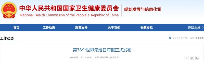 2025年5月31日是第38个世界无烟日。今年活动的主题是“拒绝烟草诱惑?对第一支烟说不”,为便于各地开展相关宣传活动,规划司组织制作了世界无烟日宣传海报。各地可在我委官网“规划发展与信息化司”子网站下载使用。