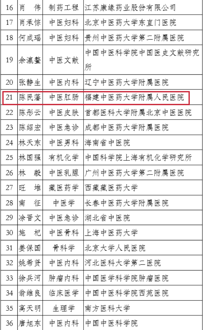 其中,国医大师、福建中医药大学附属人民医院陈民藩教授入选,是本届我省唯一入选的学部委员。