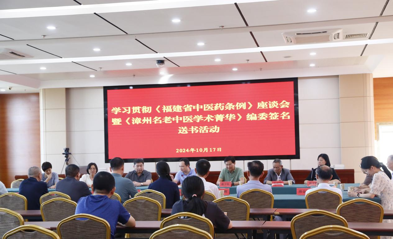10月17日下午,漳州市开展学习贯彻《福建省中医药条例》座谈会暨《漳州名老中医学术菁华》编委签名送书活动。