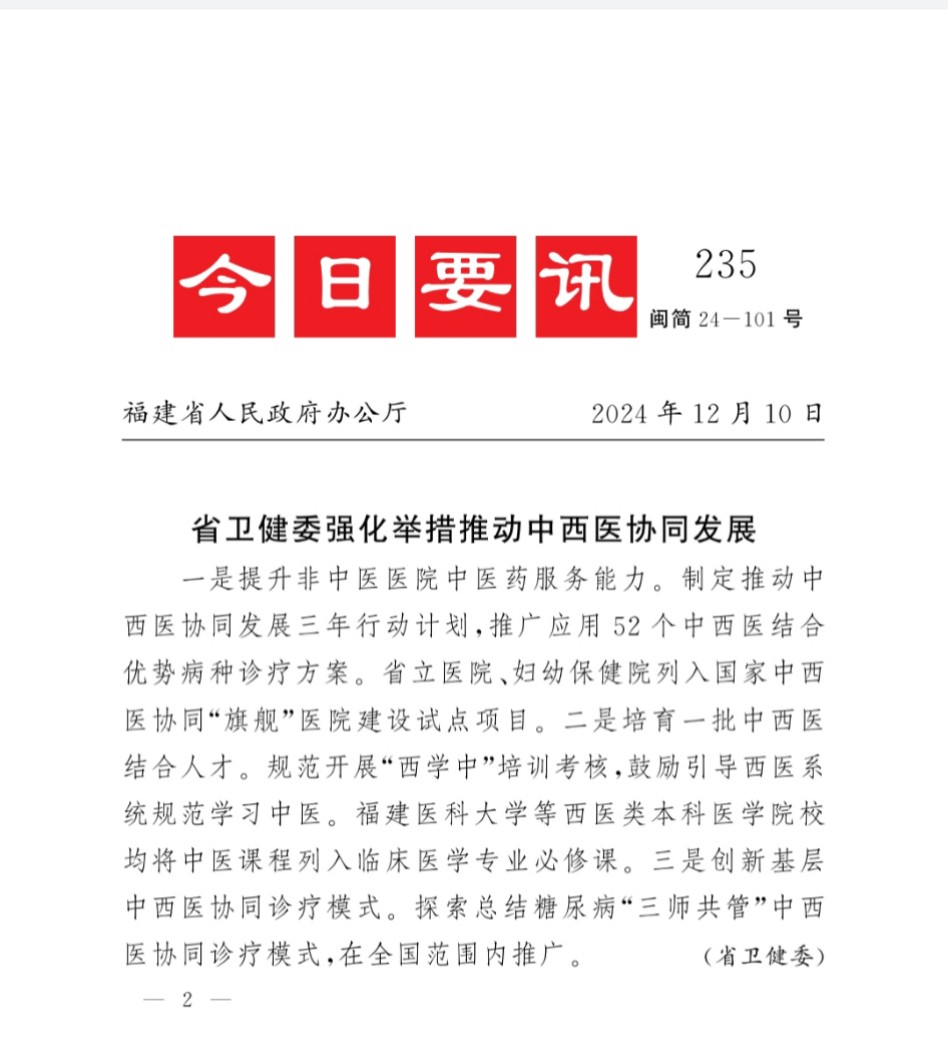 《省卫健委强化举措推动中西医协同发展》获评2024年度全省优秀政务信息