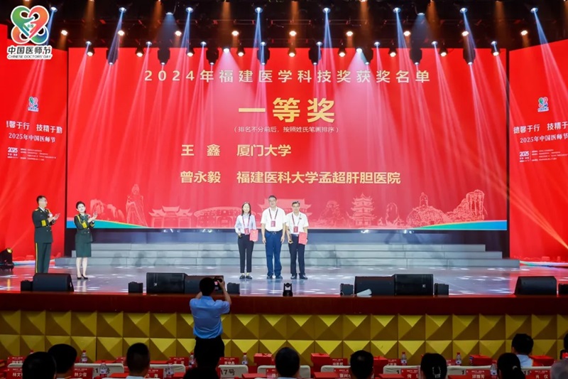 大会现场还颁发了“2024年福建医学科技奖”。该奖项设立于2007年,至今已完成18届评审工作,此次共有32项科技成果荣获“2024年福建医学科技奖”,其中:厦门大学王鑫、福建医科大学孟超肝胆医院曾永毅2人主持的项目获得一等奖;福建省肿瘤医院许元基、福建医科大学附属协和医许贞书、福建医科大学附属三明第一医院周章彦、福建省妇幼保健院衣欢、厦门市妇幼保健院林新祝、联勤保障部队第九〇〇医院宋洪涛、泉州医学高等专科学校吕国荣、 福建医科大学附属口腔医院黄晓晶等8人主持的项目获得二等奖;福建医科大学陈伟、福建省肿瘤医院费召东、福州大学附属省立医院张建成、福建医科大学附属第一医院林苏等22人主持的项目获得三等奖(具体名单附后)。