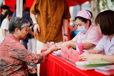 启动仪式主会场发布《吃动平衡 健康启程》福建省全民营养周主题宣传片,福建医科大学黄芳教授系统阐释“吃动平衡 健康体重”科学内涵,来自不同行业的4名专家接受媒体采访,高校同学还展示了八段锦、花样跳绳等精彩表演。同时,会场外还设有营养健康主题宣传展板,设置健康体检、营养咨询、营养宣传、现场义诊等主题展位和趣味游戏、有奖竞答等互动区域,通过形式多样的方式向群众传递合理膳食和体重管理知识,促进全民营养健康行为改善。