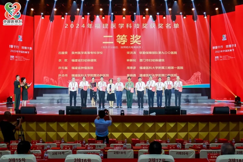 大会现场还颁发了“2024年福建医学科技奖”。该奖项设立于2007年,至今已完成18届评审工作,此次共有32项科技成果荣获“2024年福建医学科技奖”,其中:厦门大学王鑫、福建医科大学孟超肝胆医院曾永毅2人主持的项目获得一等奖;福建省肿瘤医院许元基、福建医科大学附属协和医许贞书、福建医科大学附属三明第一医院周章彦、福建省妇幼保健院衣欢、厦门市妇幼保健院林新祝、联勤保障部队第九〇〇医院宋洪涛、泉州医学高等专科学校吕国荣、 福建医科大学附属口腔医院黄晓晶等8人主持的项目获得二等奖;福建医科大学陈伟、福建省肿瘤医院费召东、福州大学附属省立医院张建成、福建医科大学附属第一医院林苏等22人主持的项目获得三等奖(具体名单附后)。