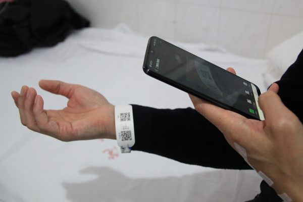 闽东医院总会计师郑颖介绍,患者办理住院手续后,医院会发放一条手腕带,腕带上新增加了患者专属付款二维码,出院后即自动失效。除了便于住院患者及家属随时随地缴费,还能随时通过手机扫码查看预交金余额、住院号等信息。