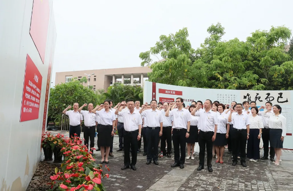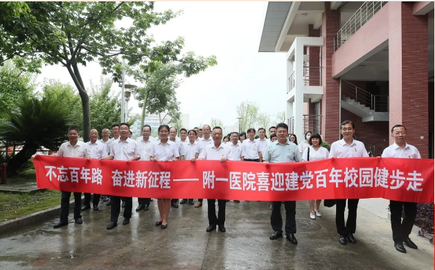 峥嵘百年,世纪风华。正值中国共产党百年华诞来临之际,为深化党史学习教育,传承红色基因,6月28日,福建医科大学附属第一医院党委书记林章雅带领院领导班子成员,医院各党支部书记、各行政部门负责人,在福建医科大学开展“不忘百年路 奋进新征程”附一医院喜迎中国共产党建党百年系列活动,通过参观红色闽医展暨党史学习教育基地、重温入党誓词、党委书记讲党课、校园健步走等,回顾百年征程,汲取奋进力量。