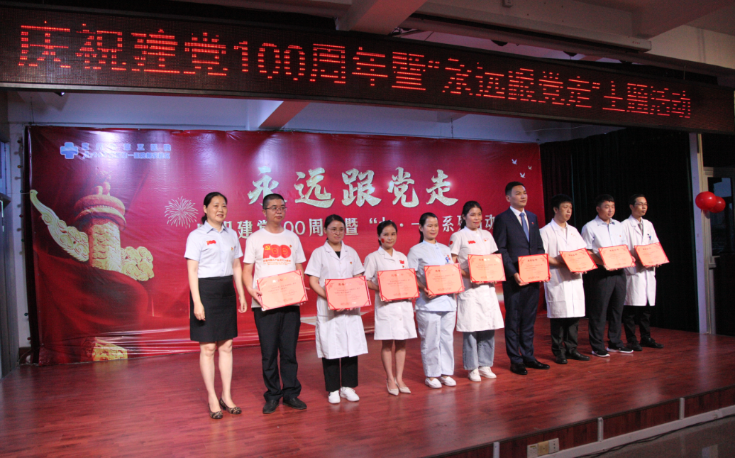 活动在观看医院拍摄的庆祝建党100周年微视频中拉开帷幕,医院党委丁丽远书记首先致辞,她代表院党委颁发了“光荣在党50年”纪念章、“两优一先”等殊荣。陈夏莲、于继业、李永盏、蔡天赐、林成加等获得“光荣在党50年”纪念章,李红梅、李勇胜、王赵伟、徐宝川、何毅琪、洪环得、黄雪珍、蔡贵阳、洪美真、苏建军等10名同志获得“优秀党员”称号,黄如意、冯冲冲、陈珍妮等3名同志获得“优秀党务工作者”称号,行政党支部获得“先进党支部”称号。
