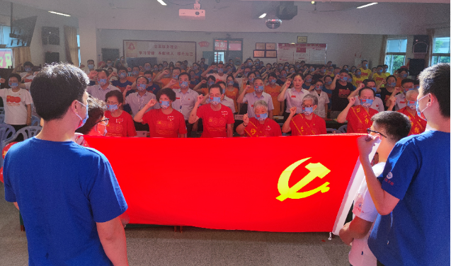 表彰仪式后,丁丽远书记带领全体党员重温入党誓词,并为党员干部上了一堂生动的专题党课——《学习百年党史 汲取奋进力量 加快推进智慧医学中心建设》。