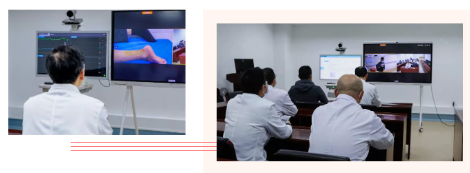12月17日,中山一院在三明市第一医院驻点的朱庆棠教授通过远程智能设备,连线大田县总医院,对一名跟腱断裂修复术后患者进行访视。一周前,朱庆棠到大田县巡诊,为该患者进行了跟腱微创修复手术。通过此次远程查房,朱庆棠详细了解了患者术后恢复情况,给予康复指导意见,并解答了患者的问题。