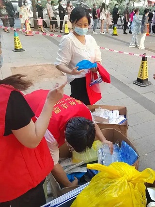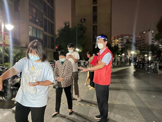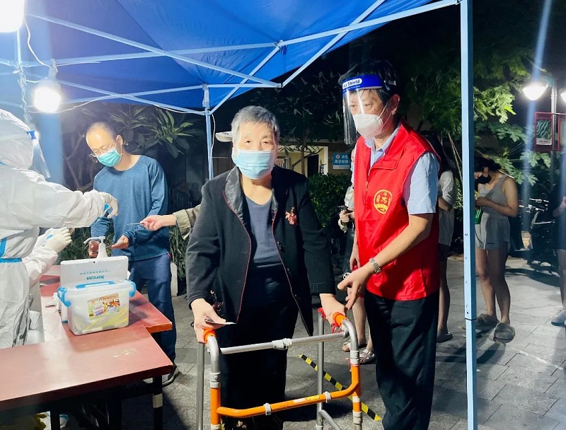 随处可见的“志愿红”,穿梭在街头巷尾,维持现场秩序,引导帮助行动不便的老人完成核酸采样。