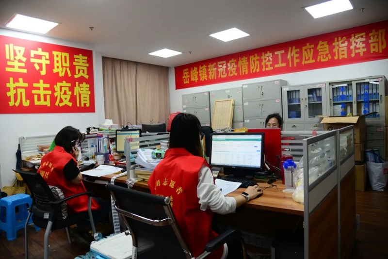 岳峰镇疫情防控指挥部工作人员加班加点进行数据摸排。