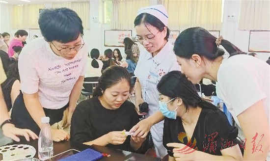 此次培训精心设计相关系列课程,既有新的护理理论知识,又有工作坊实操演示,更好地满足基层日常护理工作的需要。优秀护士长、护理骨干等9位专家授课分享《护理风险管理》《老年人衰弱预防》《糖尿病健康教育与专科质量控制》等内容;同时开展了静疗、PICC、糖尿病和心肺复苏工作坊活动,分组现场教学和实践(如图)。学员们纷纷表示,这次培训对护理人员自身整体素质的提升、学习积极性的调动、护理质量与安全管理的提升起到了积极推动作用。
