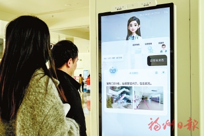 孟超肝胆医院金山院区内,市民与导诊数字人对话。本报记者 石美祥摄