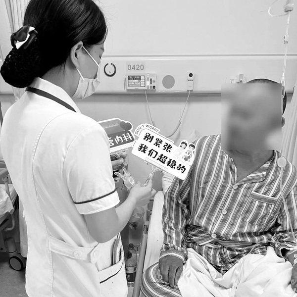 相关检查或手术前,护理人员会将精心设计的鼓励卡交至患者手中。卡片上,“造影打卡,心没烦恼”“别紧张,我们超稳的”“造影通,心轻松”等简短而真挚的话语,如同一剂剂“心理疫苗”,为患者筑起勇气护盾。术后回访中,患者蔡先生动情地说:“看到小卡牌的那一刻,心里突然就踏实了,紧张感也随着消散了。医护人员的用心,让我真切感受到自己被关心和爱护着。”