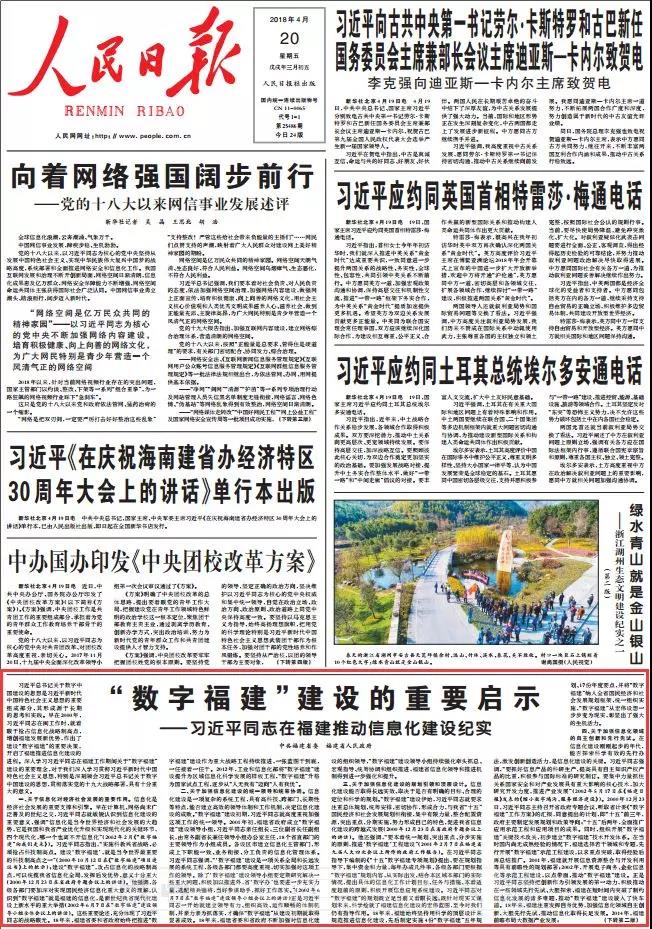 信息化是经济社会发展的重要支撑和引擎。早在计算机、网络尚未广泛普及的世纪之交,习近平同志就敏锐认识到信息化建设的重要意义,强调“信息化是当今世界经济和社会发展的大趋势,它是我国和我省产业优化升级和实现现代化的关键环节,四个现代化,哪一个也离不开信息化”(2002年2月《“数字福建”向我们走来》)。习近平同志指出,“实施科教兴省战略,必须抢占科技制高点。建设‘数字福建’,就是当今世界最重要的科技制高点之一”(2000年10月12日在《“数字福建”项目建议书》上的批示);建设“数字福建”,攻占信息化的战略制高点,可以统揽我省信息化全局,发挥后发优势,意义十分重大(2000年12月23日在省政府专题会议上的讲话)。他强调,各级各部门要加深对实现国民经济信息化重大意义的理解,认识到“数字福建”就是福建的信息化,是新世纪我省现代化建设上新水平的重大举措(2002年6月7日在“数字福建”建设领导小组全体会议上的讲话)。这些重要论述,充分体现了习近平同志的战略眼光。18年来,福建省委和省政府始终把推进“数字福建”建设作为重大战略工程持续推进,一张蓝图干到底,一任接着一任干。2012年,工业和信息化部将“数字福建”建设提升为区域信息化科学发展的样板工程,“数字福建”升格为国家试点工程,逐步从“人无我有”迈向“人有我优”。