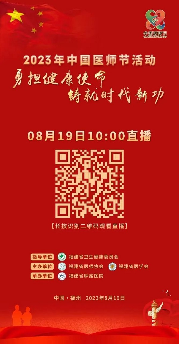 由福建省卫生健康委指导,福建省医师协会、福建省医学会联合主办的2023年中国医师节庆祝大会将于8月19日上午10:00准时开幕,敬请收看。