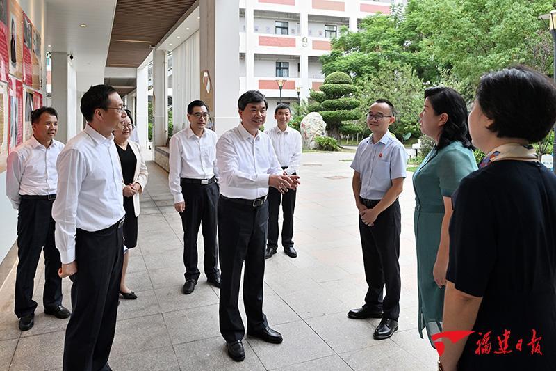 厦门市音乐学校校园内,绿树红花,琴声悠扬。周祖翼一行走进教室和排练厅,详细了解学校发展情况,与优秀教师代表交流音乐教学和文化教学的特色优势。《绿叶对根的情意》《长大后我就成了你》……在观摩远程音乐教学和观看乐团排练后,周祖翼对教师们说,从你们发自内心的笑容上,充分感受到作为一名人民教师的荣誉感、成就感、幸福感。希望大家不断提升自我,做伴随学生成长的良师益友,引领帮助学生追梦、筑梦、圆梦。学校要完善激励机制,优化教师结构,把更多优秀教师人才引进来、留下来、发展好。
