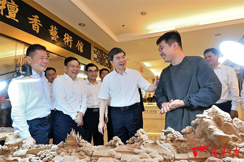 以木为纸、刀为笔,仙游县是知名“仙作”古典家具发源地。如何推动传统特色工艺美术产业转型升级、创新发展?周祖翼来到三福集团,询问古典家具产业发展现状和企业近年来销售经营、创新开发、人才培养等情况,与正在精雕细琢的雕刻师交流,饶有兴致地了解“仙作”技艺特点,并叮嘱他们在埋头创作的同时要注意保重身体。周祖翼希望企业要坚守主业,做大做强品牌,不断开拓新领域、新市场;要大力推广非遗技艺文化,把这门手艺一代一代传承下去、发扬光大。得益于丰富的工艺美术产业资源,仙游抖音电商直播基地蓬勃发展,今年前三季度商家网络销售额达48亿元,在全国同类基地名列前茅。周祖翼走进基地数字展厅,听取了解电商行业运营情况,希望当地着力发展直播电商等新业态,加快产业数字化转型,为实体经济插上数字翅膀,让古典家具工艺焕发新生。莆田木雕兴于唐宋,盛于明清,崛起于当代。在春晖木雕艺术馆,周祖翼与非遗传承人深入交流,强调要注重非物质文化遗产的保护传承,加大对传统技艺的弘扬创新,加强文化遗产保护人才的培养,为推动中华优秀传统文化创造性转化、创新性发展作出福建贡献。周祖翼还调研了仙游千亿级新能源新材料产业园建设现场。