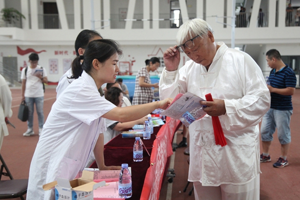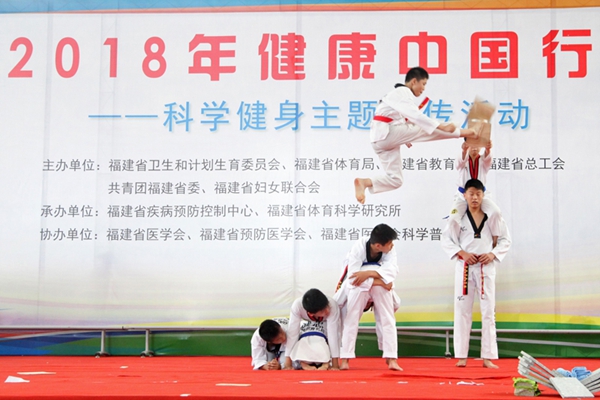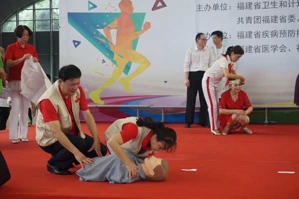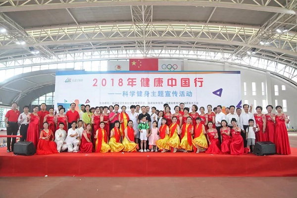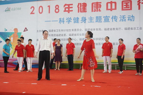 7月19日,在2018年福建省健康中国行——科学健身主题宣传活动现场,省卫计委、省体育局、省教育厅、省总工会、共青团省委、省妇女联合会等主办方设置了健身和文艺表演区、医疗专家及科学健身咨询区、健身科普宣传展示区和体质测试区,给民众上了一堂生动的科学健身课。