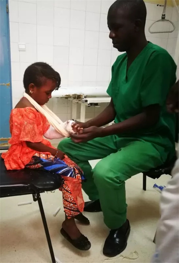 与外聘的同仁相处本着相互的尊重与平等相处,开始有些操作,有些手术该不该做按规范治疗是抵触的,后来表示理解,有些是确实不规范,有的却是条件限制,像止血带,套筒及丝攻坚决坚持,螺钉及部分手术方式确实是由于器材条件限制理解,现在用的还是普通钢板和梅花髓内钉而且规格不全,有时还挺佩服他们和自己能用如此简陋的器材解决很多问题,有些疾病的治疗也就是为了获取更多的功能,患者也是受益很多的,要不就再也不会介入情况会更糟。可以做到的原则问题言语礼貌措辞坚决,条件限制的问题共同讨论,DIAGGNE先生NDOYE先生和我三人成为Amigo(朋友)常常称呼Bon ami(好朋友)。潜移默化,渐渐发现他们有些操作和思维也变化了很多。科里的护士如兄弟姐妹,经常交流锻炼语言,他们也会时不时地带一些亲戚朋友找我看病,遇到不懂得问题经常向我请教,单独查房时我遇到不懂法语(官方语言)说沃洛夫语的患者就请他们当翻译。
