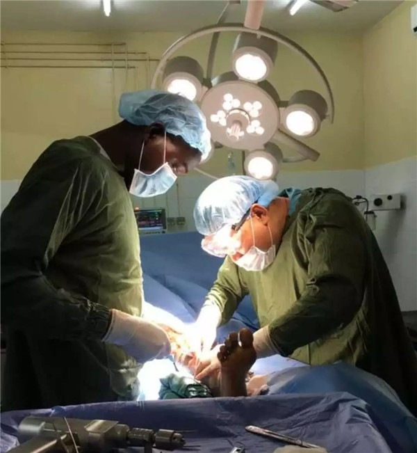 当地医生对中国医生很有礼貌,见面都会Bonjour(你好),尊重是用技术和劳动换来的。刚来时,当地医生也就当你是个帮手,几次陈旧复杂手术复位困难依靠经验技巧帮他们搞定,正确判断关节线无C臂条件下正确植入关节处的内植物,尤其是有次次髓内钉反复由髓腔内穿出,换手帮他们操作完,还有就是带他们利索地缝合了肌腱和血管后开始对我更客气了,手术日基本是当日结束才离开,不论多迟,手术室负责人NIANG先生每次结束时都对我竖起拇指说一声MERCI(谢谢)。