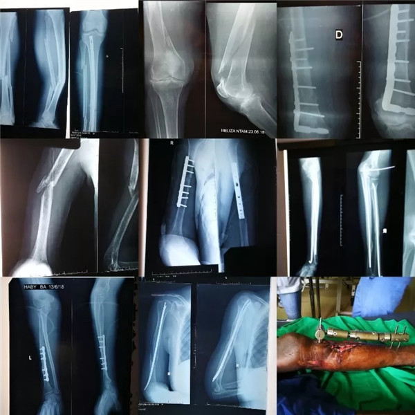 C臂机坏了一年多到现在还不能用。当地的医生有强烈的自尊心也相当的固执。几轮的援外医生都很难改变,一个间隔期间就回到原样,不爱用止血带常常用手套扎,螺钉经常剪。手术指征方式有时不够准确,胆子大。用不好电刀,深层分离经常是钝性,或是剪刀,解剖层次模糊。反复多次的提醒示范用好电刀,清晰的解剖层次,避免暴力复位,规范止血带应用,钻孔用套筒,用丝攻,尽量避免剪螺钉。肌腱和血管的缝合他们必须要我来,如果参加队部集体活动不在驻地此类患者就转院。