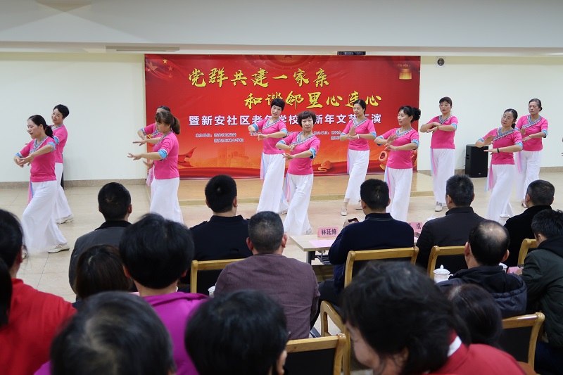 一是依托社区老年学校,丰富文体活动。老年学校开设电脑基础、智能手机应用、器乐、舞蹈、柔力球、远程教育等9个课程和时事政策、医药保健、防诈骗、消防安全等知识讲座。还在新安大院等5个小区设立教学点,满足老年人就近学习的需求。社区成立腰鼓队、舞蹈队、柔力球队等老年文体队伍8支,老年人文体健身活动实现常态化。