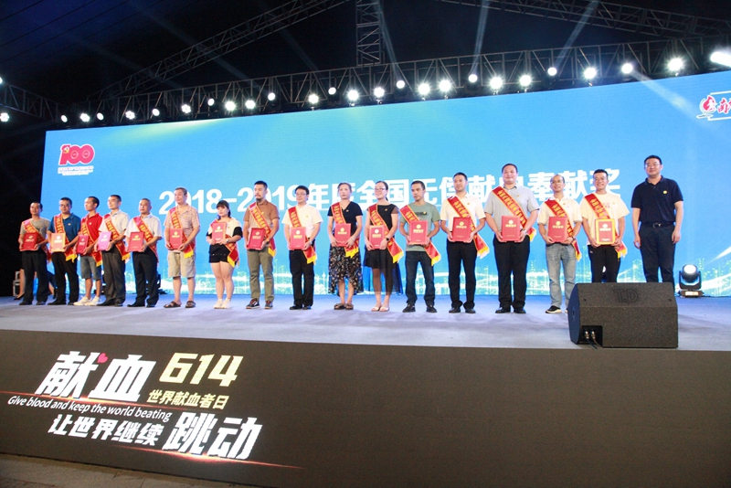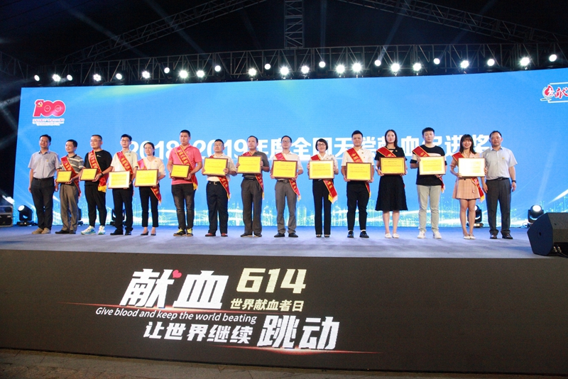 活动中,分别向2018-2019年度全国无偿献血奉献奖金奖、无偿捐献造血干细胞奖、无偿献血促进奖及无偿献血志愿服务奖等奖项的获奖代表颁发奖状。