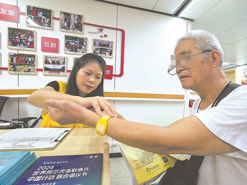 “年纪大了记性不好,有了黄手环,关键时刻可救命。”9月19日下午,在福州市台江区万达广场举行的“世界阿尔茨海默病日”公益活动中,来自福州市小蜜蜂扶老公益服务中心的志愿者为76岁的福州市民林新民(化名)戴上了“黄手环”。