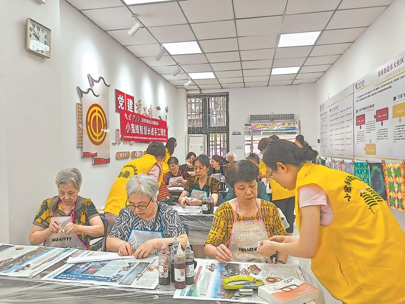 福州市小蜜蜂扶老公益服务中心志愿服务团队走进社区开展健脑手工课堂活动。