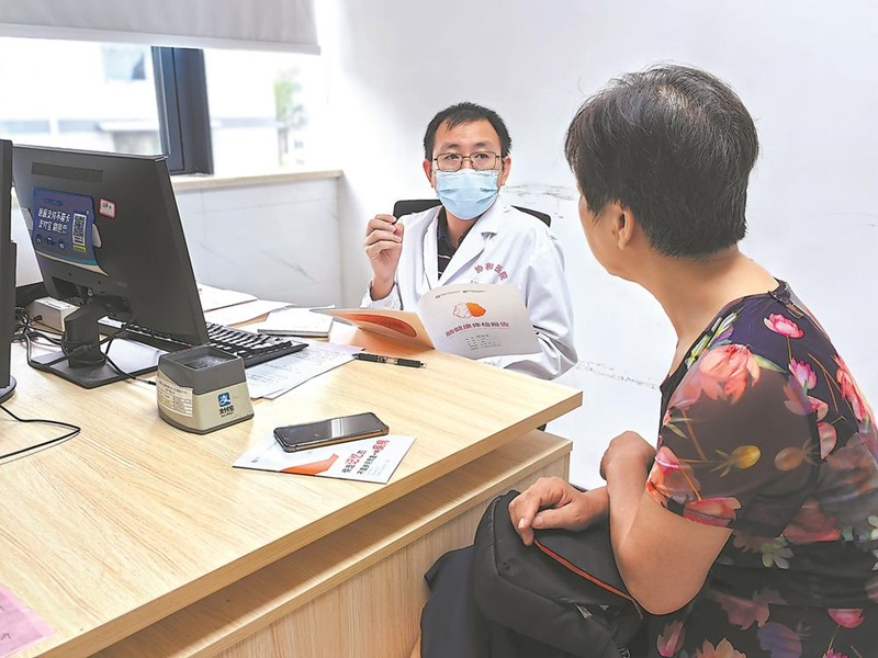 在福州市安泰街道社区卫生服务中心,来自福建医科大学附属协和医院神经内科的驻点专科医生为老年人解读《脑健康体检报告》。