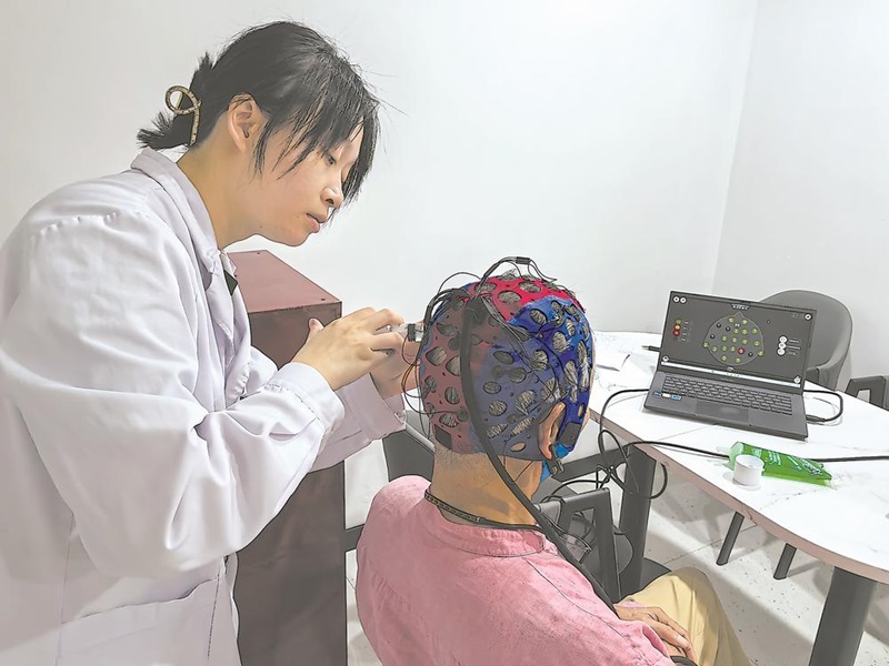服务中心主任凌湘介绍,社区脑健康中心对55岁至75岁人群免费提供阿尔茨海默病认知功能、脑电检测等筛查。“差不多10分钟,智能认知筛查系统就能得出认知水平的初步结论。”