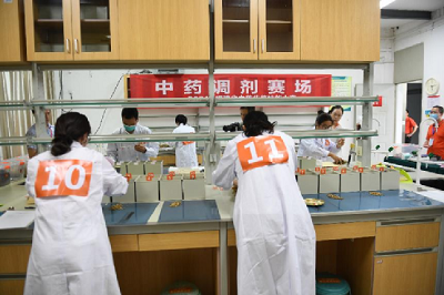 本次大赛为时两天,共进行了理论笔试初赛和审方、中药性状鉴别、中药调剂、中药显微鉴别、中药炮制等5项实践技能决赛的考核。