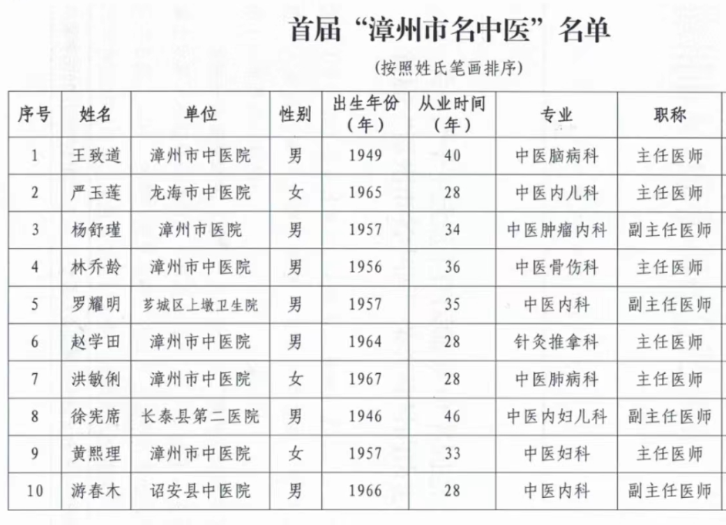 日前,漳州市卫生健康委员会官网公布了第三届“漳州市名中医”,共10名,一起看看都有谁?