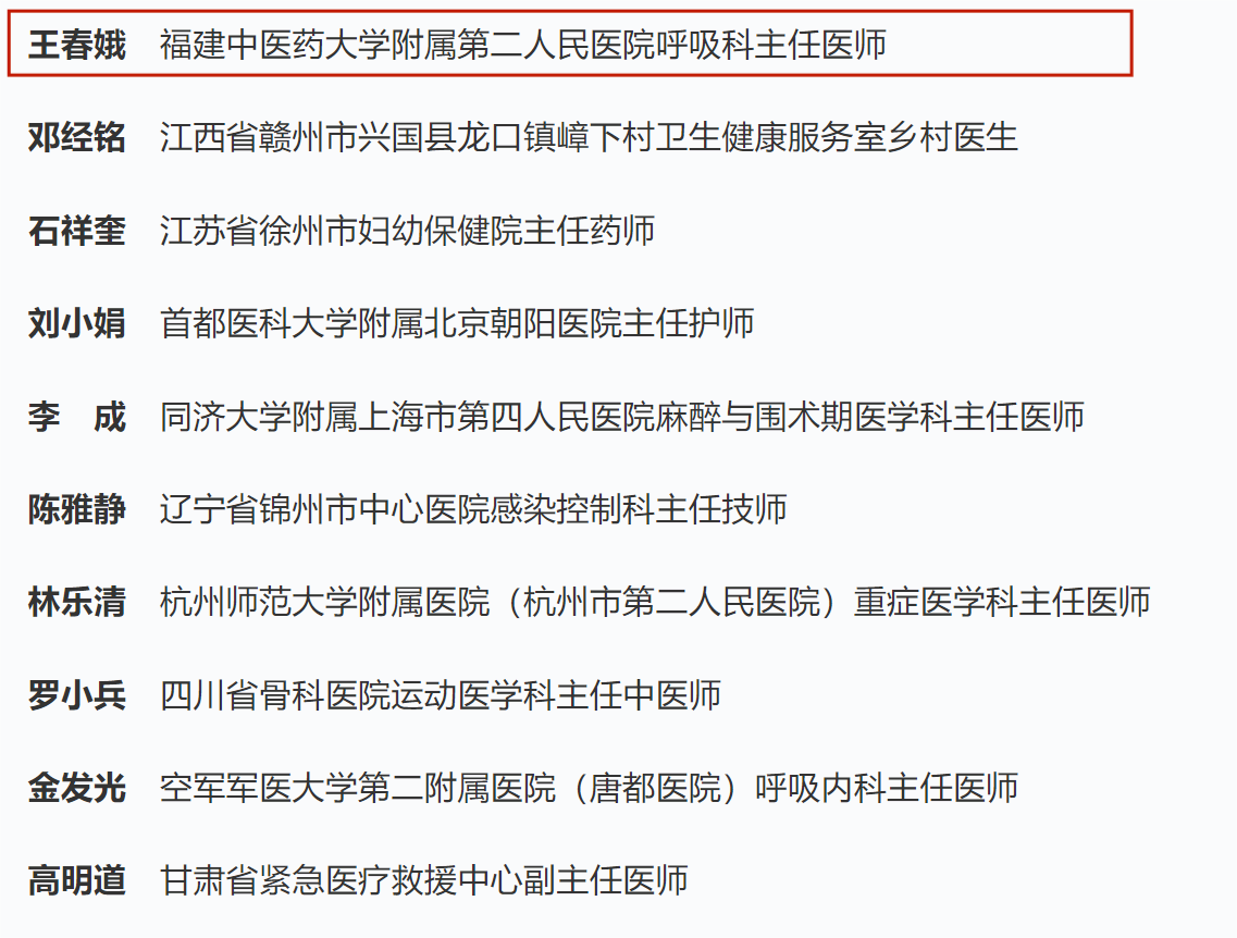 近日,由中央精神文明建设办公室和国家卫生健康委员会共同组织的“中国好医生中国好护士”网上推荐评议活动,经过群众推荐、集中展示评议等环节,共有10位优秀医务人员入选2024年4月月度人物。其中,我省建中医药大学附属第二人民医院呼吸科主任医师王春娥入选。
