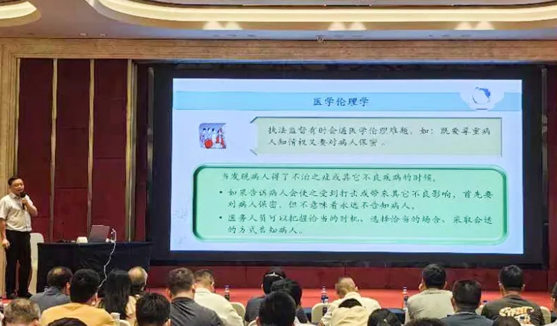 培训班邀请省中医药管理局中医一处钱新春处长从健康与健康道德准则出发,分享生命、生育控制和死亡伦理道德、现代医学技术发展中的伦理道德,从医学伦理方面探讨中医执法监督工作。