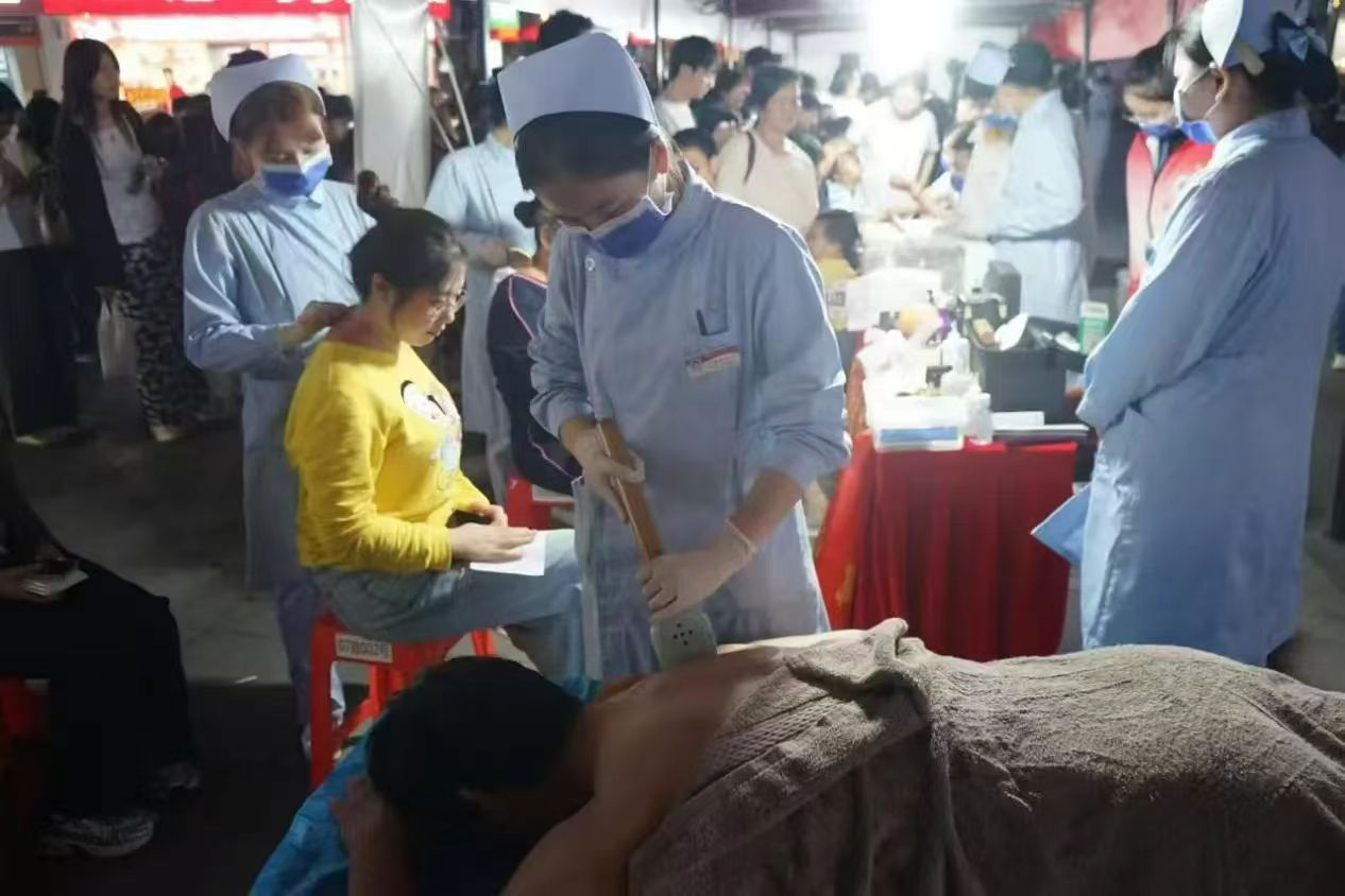 为弘扬中医药文化、助力健康生活,不断提高人民群众对中医药的理解和认识,11月2日晚,福建中医药大学附属第三人民医院联合福建中医药大学团委、福州高新区教育和卫生健康局在中海寰宇天下小区北门商业街开展主题为“弘扬中医药文化 助力健康生活”的中医药文化夜市活动。中医名家通过望、闻、问、切,给予不同体质、症状的群众健康建议,提供个性化治疗方案。中医护理门诊护士们以精湛的中医护理操作让现场群众深切感受传统中医的神奇与魅力。中医健康管理中心营养师提供营养指导和中医养生花茶品鉴体验,还有中草药标本展示更是吸引了众多大小朋友。活动现场人山人海,中医药文化夜市让群众在休闲的氛围中了解中医、相信中医、使用中医。