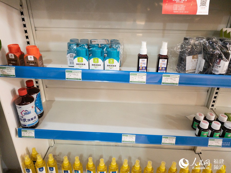 29日下午,南靖县和贵路一家药店内,医用酒精已售空。余杉芳摄