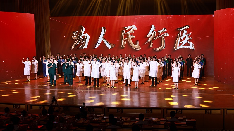 与会人员一同欣赏了福建中医药大学附属第二人民医院带来的开场舞蹈《绘医者山河》、情景剧《红医精神》、朗诵《为人民行医》等节目。