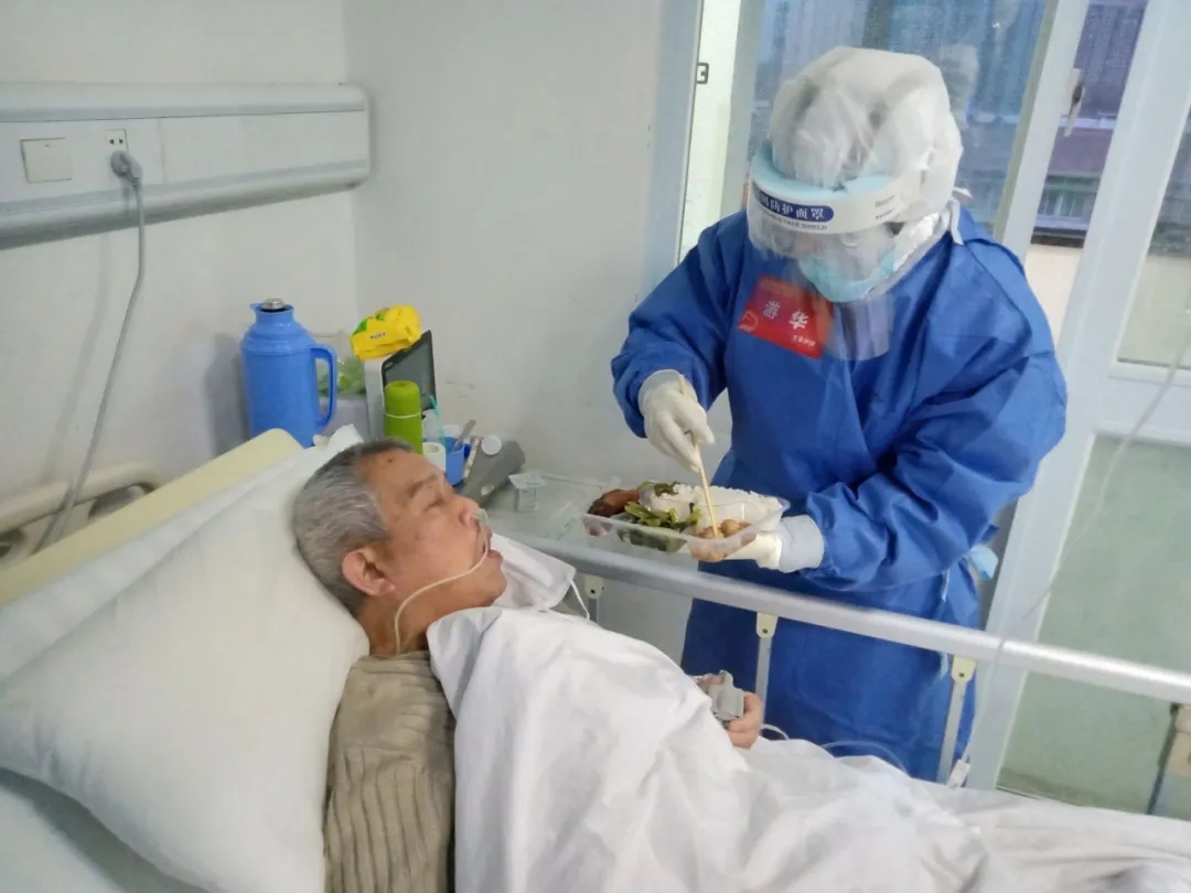 在这场新冠疫情里,有很多患者全家感染,也有很多患者失去了自己的至亲,甚至独自一人活着,面对这样不仅需要照顾身体,更要照护好心理的一群患者,游华护士充分展示出了她双面瑰丽,战役百合的军人风格,既勇气在身,又温润婉约,让患者可以安下心来,保持比较积极的心态,积极配合治疗。