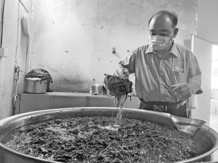 唐志杰曾是片仔癀药业研究所所长,退休后潜心于中药临床研究,为《漳州民间中医资源荟萃》贡献多个方剂。图为唐志杰在熬煮中药。杜正蓝 摄