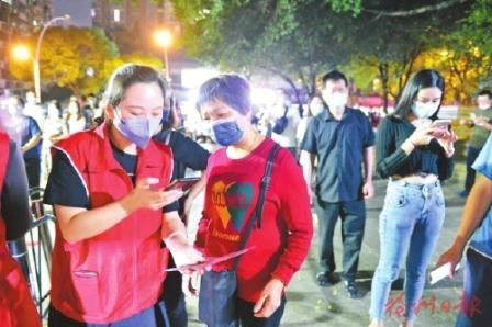 昨晚,在茶亭公园东门核酸检测点,洋头口社区的志愿者帮助市民采集信息。叶诚摄