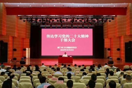 近日,厦门市卫健委召开干部大会,传达学习中国共产党第二十次全国代表大会精神。机关干部和直属单位党政主要领导等120人参加会议。市卫健委党组书记、主任、一级巡视员姚冠华传达了党的二十大精神,并部署下一阶段工作。