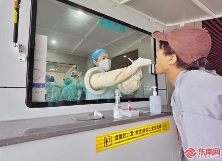 核酸采样人员在南平市体育中心为省运会工作人员进行核酸采样。郑艺姝 摄