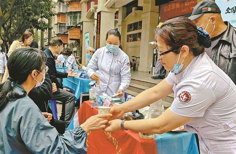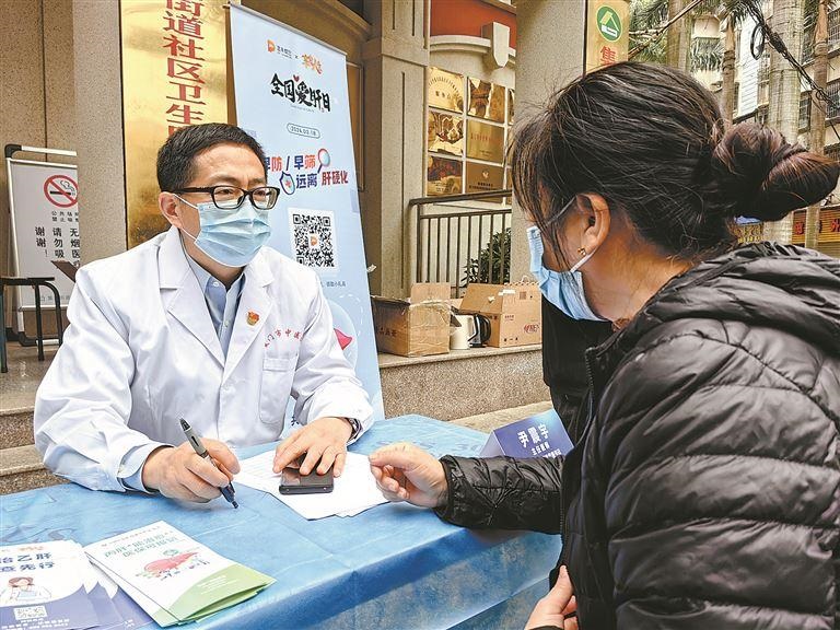 市中医院肝病中心医护人员在义诊活动中热情为居民服务。(江昌铭 摄)