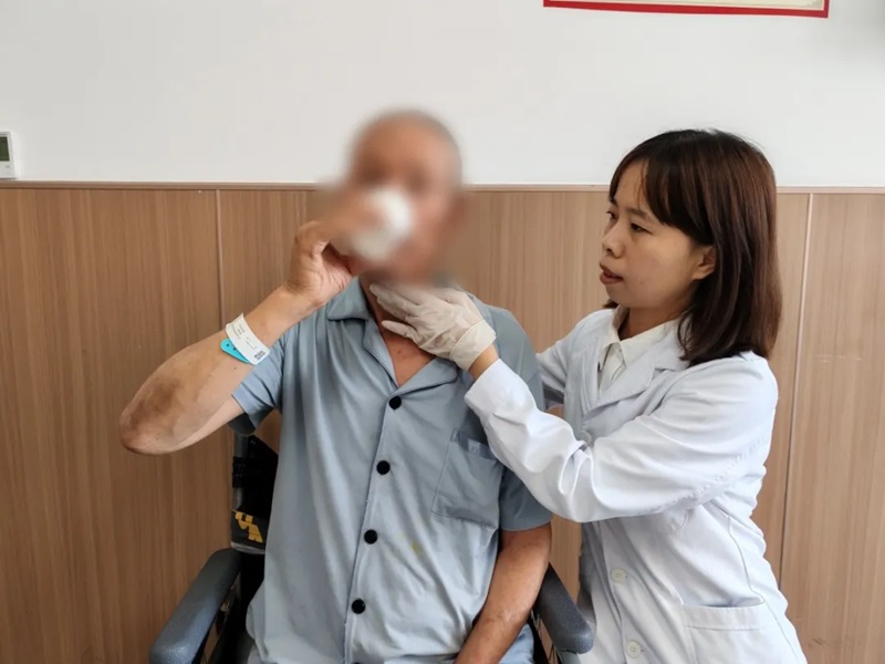 邱丽芳为患者进行吞咽障碍评估